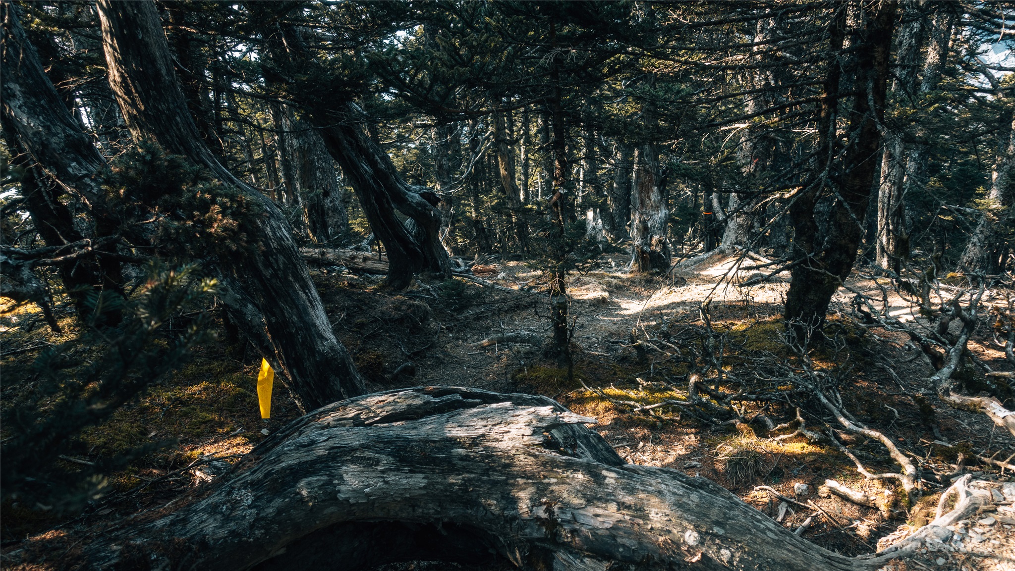 印象中,從這段路開始就會看到上圖右方的紅布條,一開始沒覺得有什麼特別的,但隨著後面走到南稜上,這時不時出現在箭竹、樹林間的「一點紅」卻帶給我極大的信心與安慰。