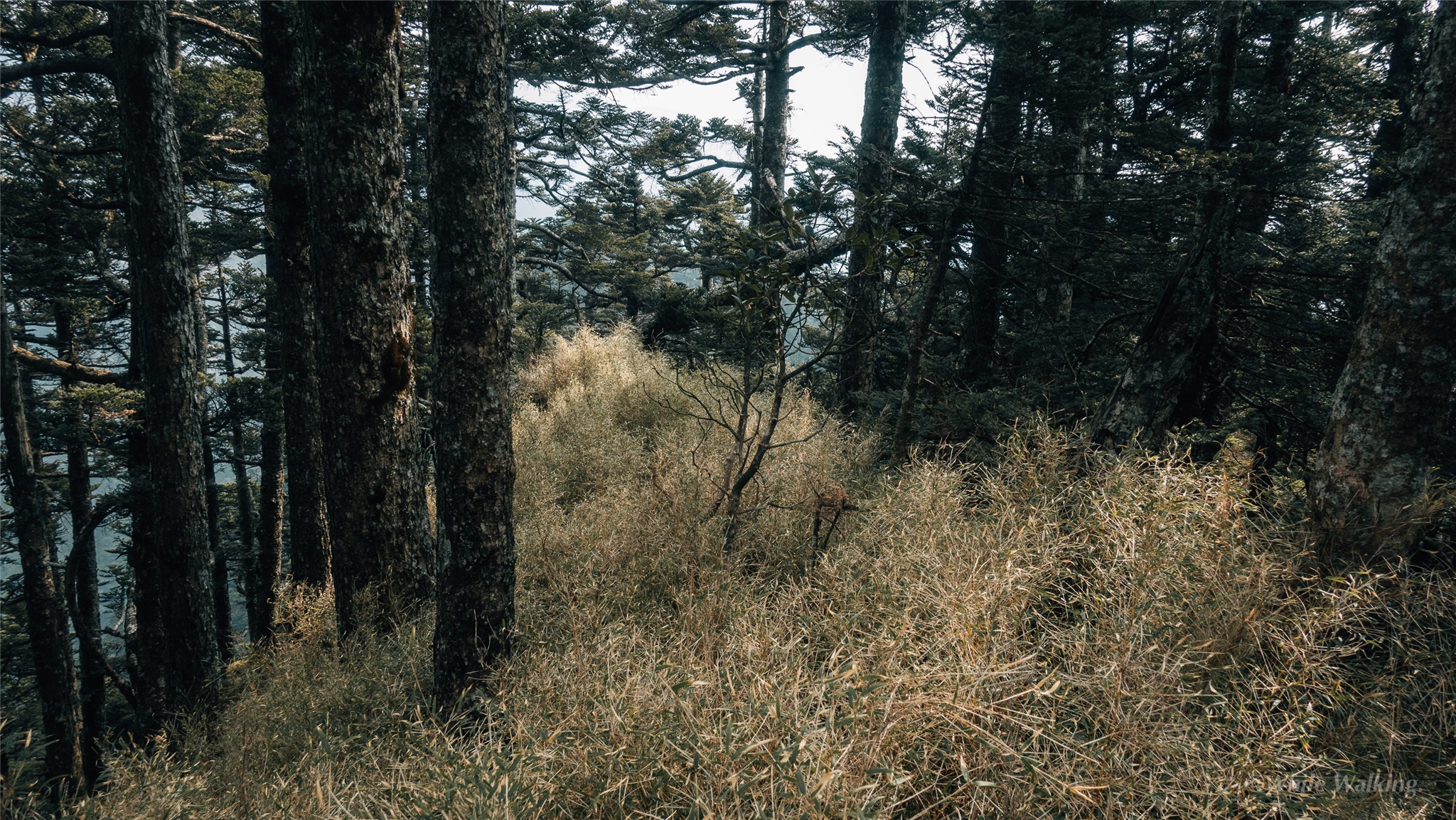 在嘗試幾次之後便放棄了這樣的路線,改切回稜線後沿著稜線走,雖然可能相對危險及未知,但至少方向及路線是明確的…反正就是走在稜線上嘛。