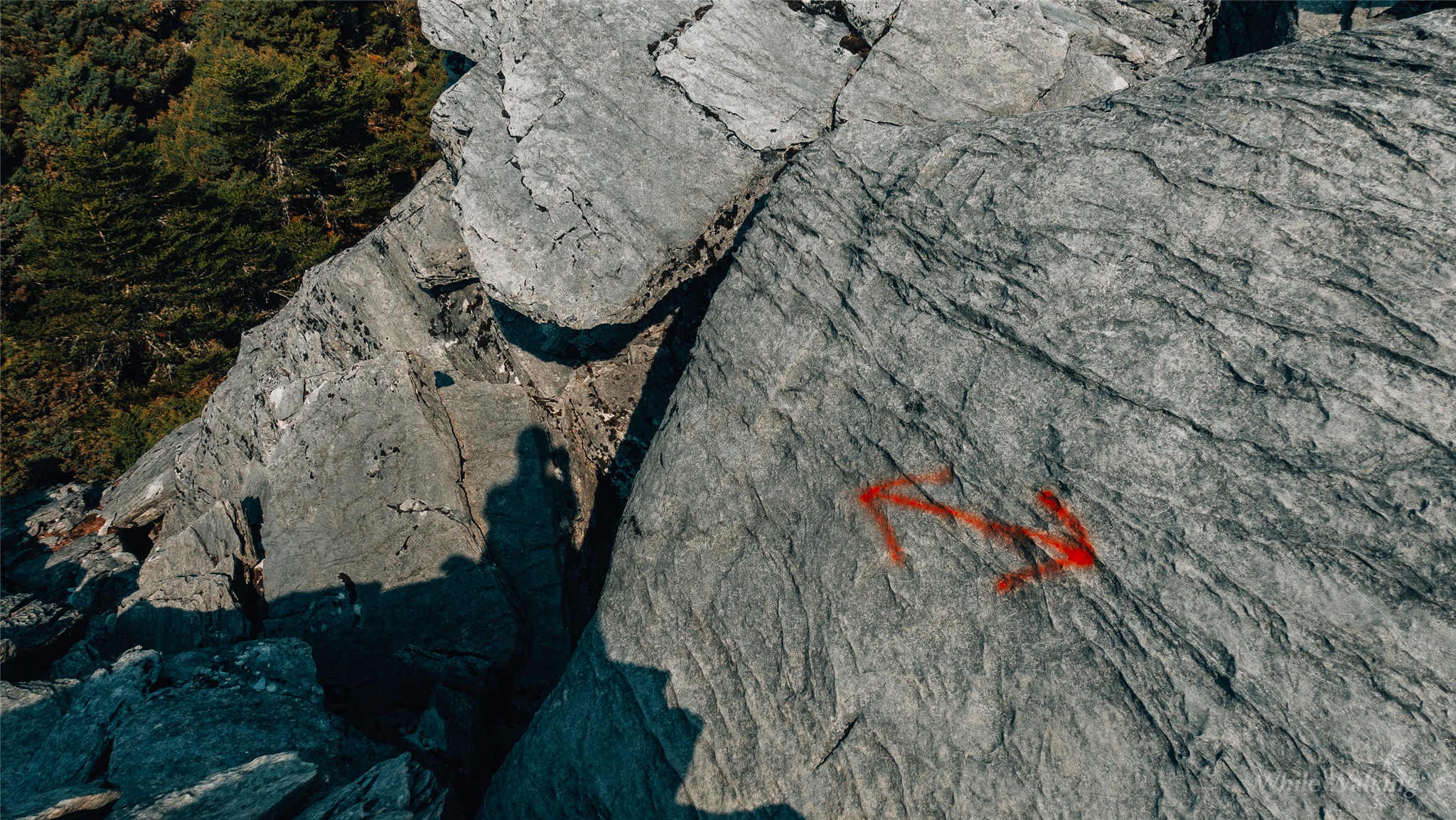 走了十分鐘才發現應當是走錯路了,左方的稜線才應該是正確的主稜,經過了25分鐘的搏鬥,才終於算是走到了正確的路徑-看到了第一個布條。