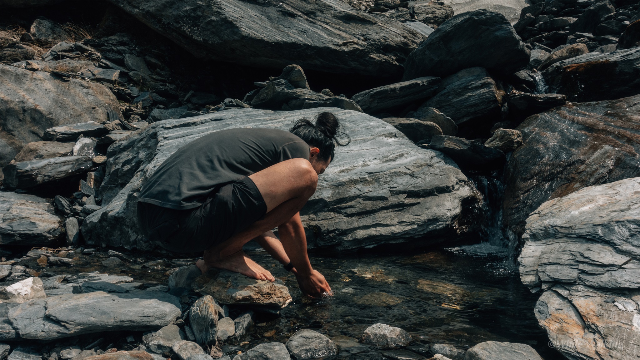 走了一個小時後終於碰到了兩天一來的第一個活水源,顧不得水質乾淨與否先喝一小口後便趁後方山友追上前好好的梳洗一陣。