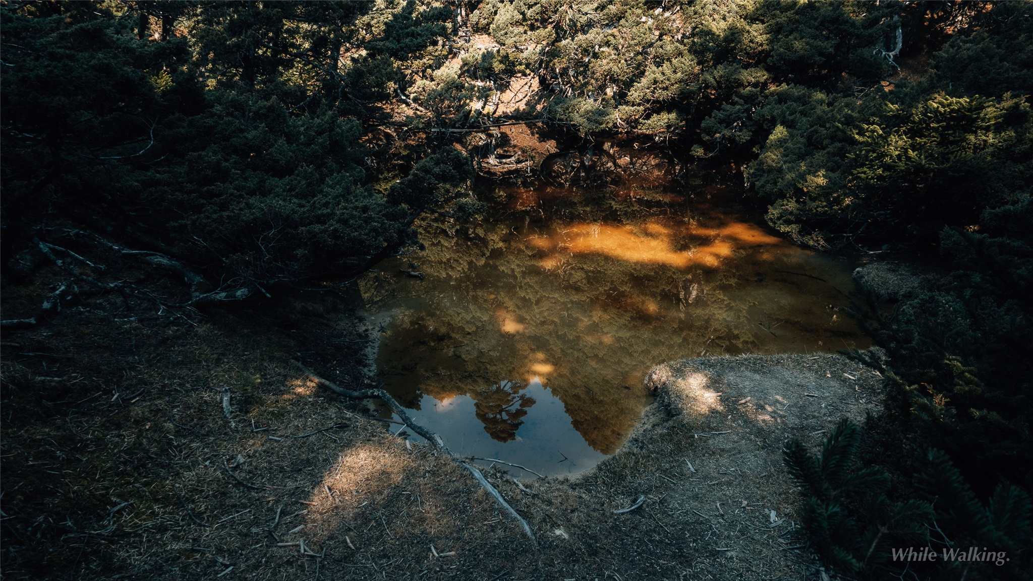 到了鞍部,水池接近滿水位讓我著實鬆了一口氣,雖然剛剛遇到的山友也說是同樣的情形,但實際看到還是比較踏實,只是水質實在令人擔憂,為了健康還是濾過再加大水滾過才敢入口。