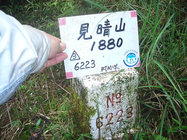 12:15 登頂見晴山,H1880M,三等三角點No.6223號,同樣樹林山頭無展望,且又下雨,拍完照快閃