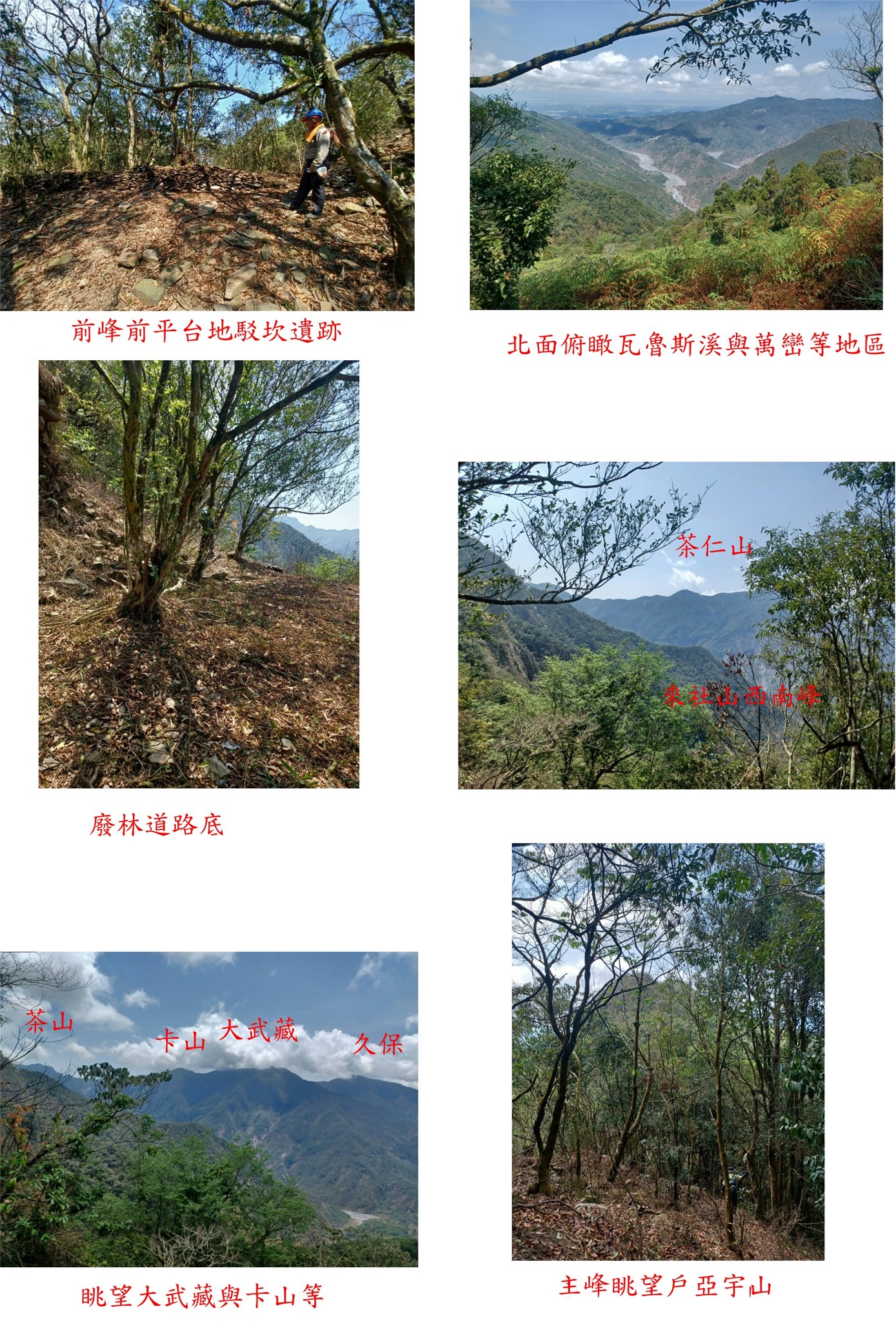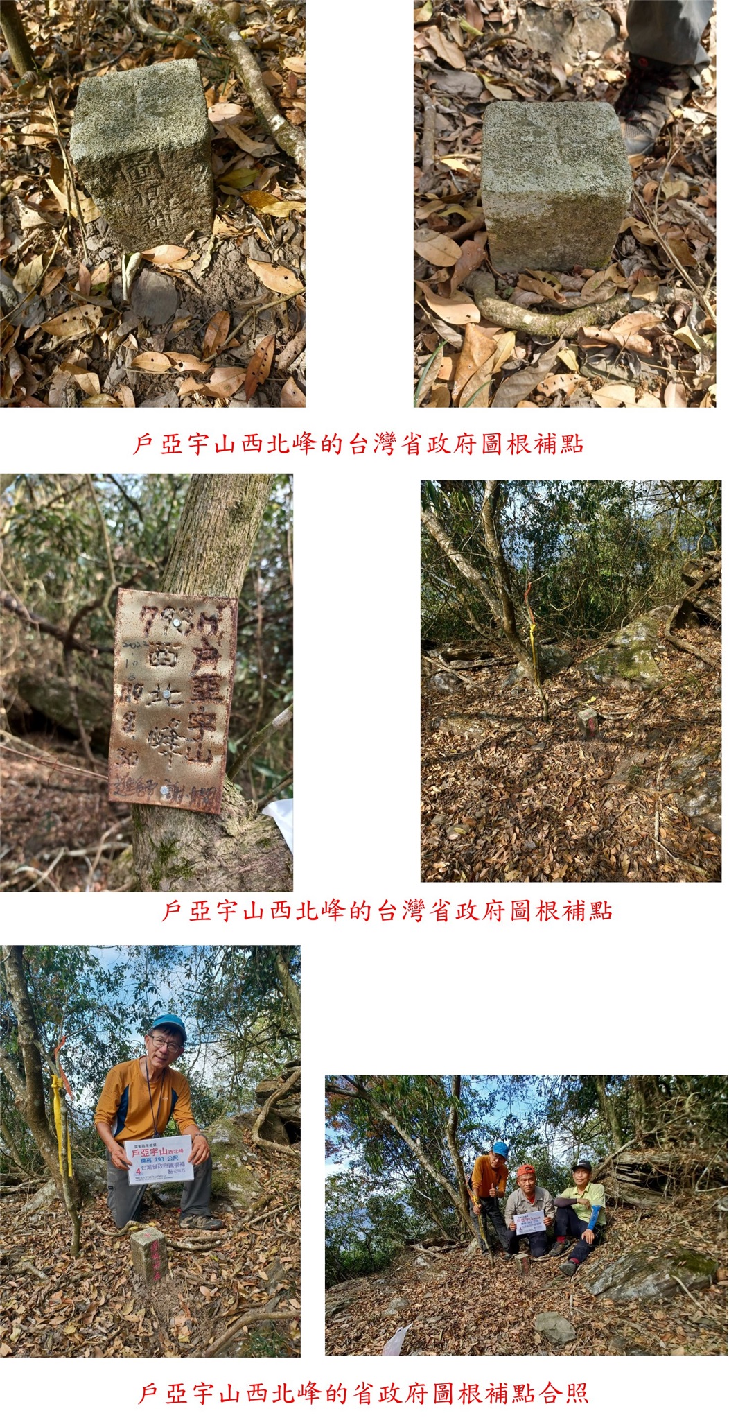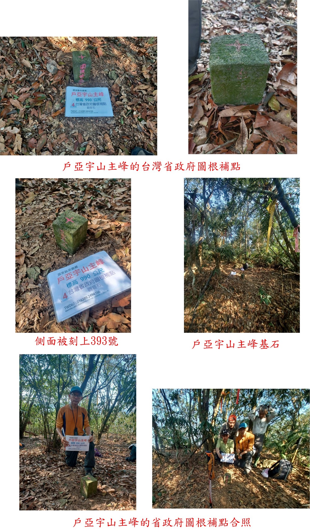 5、戶亞宇山西北峰:位於屏東縣來義鄉,標高793公尺,台灣省政府圖根補點;座標215176 2494952。