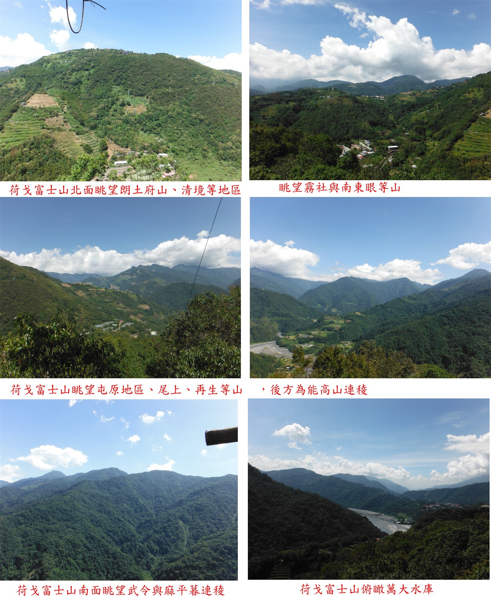 5、荷戈富士山:又稱櫻山或小富士山,位於南投縣仁愛鄉,標高1349公尺,台灣省政府圖根補點;座標264747 2658032。