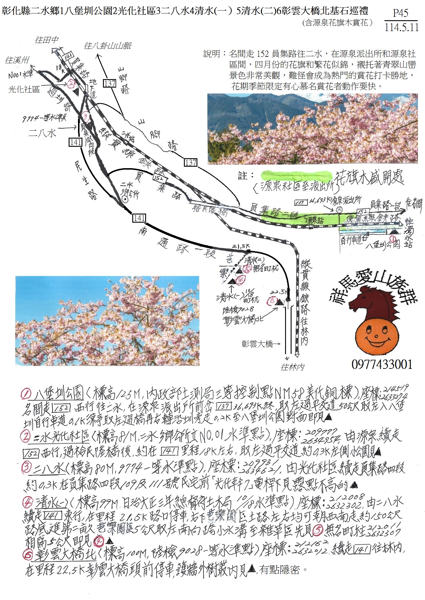 5光化社區(標高81M,二水鄉公所立NO .01水準點),座標:209777.2634954(再訪)