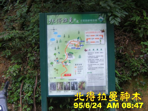 08:30第一登山口【04】,入口處對面樹幹釘一標示牌,指示往北得拉曼方向,山徑方向大致與林道平行,捨此山口,沿林道續行。