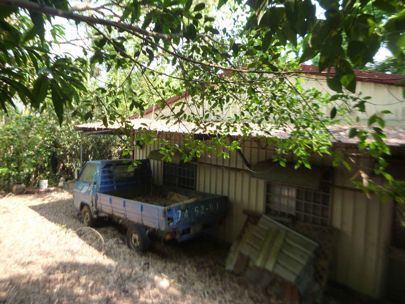 3倒塌湖山基石在鐵皮屋後面鐵欄杵旁