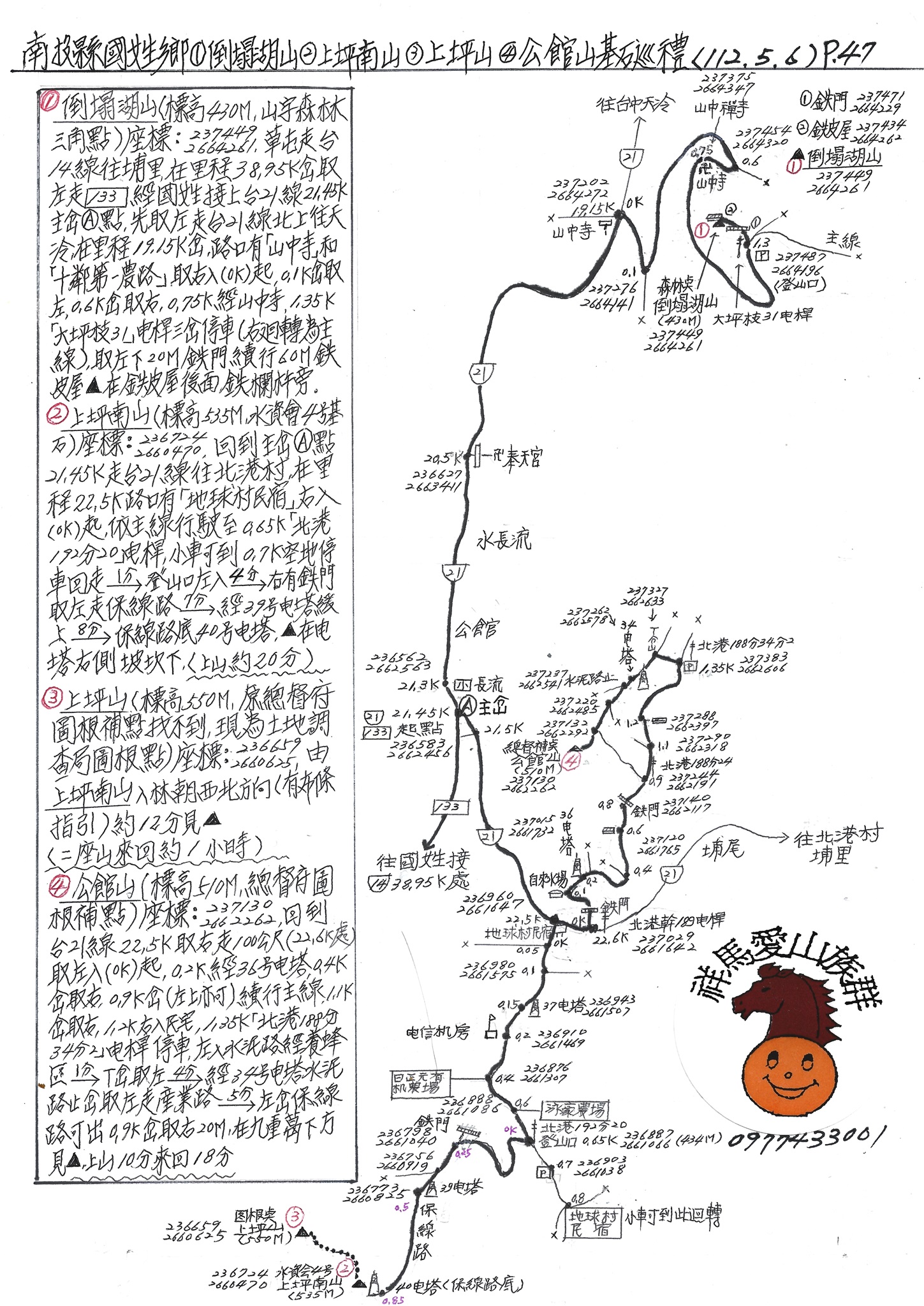 6上坪南山(標高535M,水資會4號基石),座標:236724.2660470,基石在40號電塔右側(再訪)