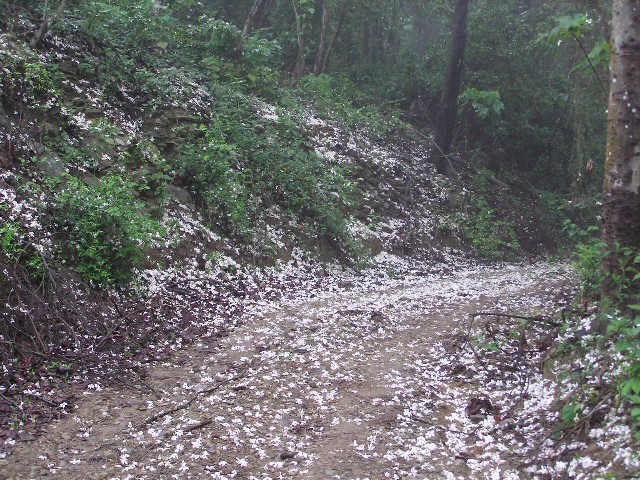 時間接近五月,往三地山及龍母拜山的產道都是油桐花盛開,路上掉滿白花,非常美麗及壯觀,此乃五月雪由來。賞花景不必到苗栗了,南部也是很可觀,要去要趁早!路程請參考之前tcchj發表的文章,謝謝張兄的資料!僅附上軌跡gif檔。