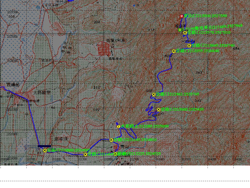 登山口GPS:213488,2527346 09:00出發→09:05龍母拜山三角點GPS:213468,2527066