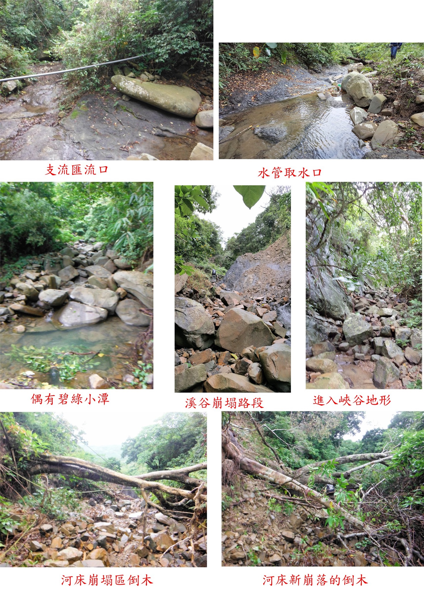 08:06崩塌倒木,跨過河床新崩落的倒木,前方崩落的土石占掉半過河床,大水時很快就會沖刷掉。