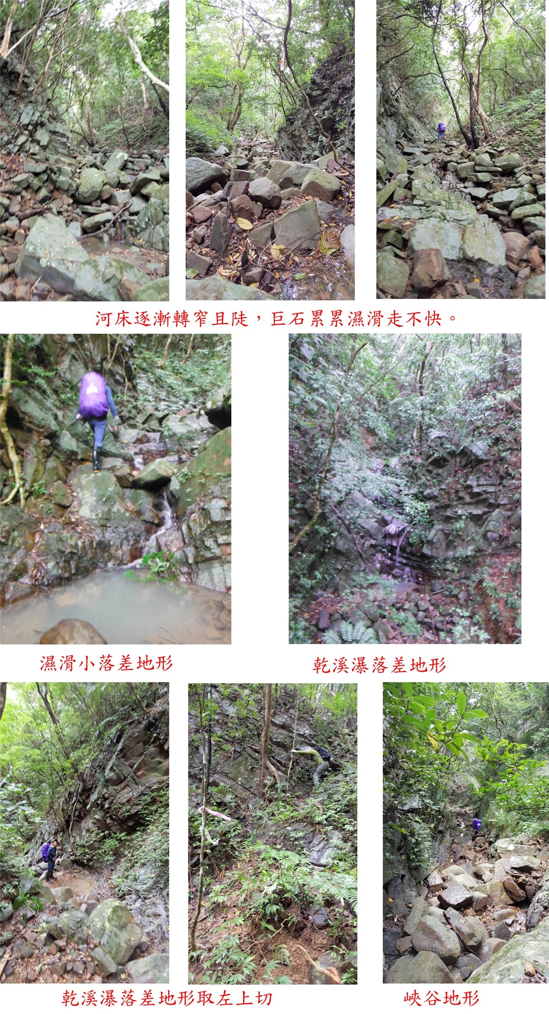 07:41續行,河床逐漸轉窄且陡,巨石累累下過雨濕滑走不快,偶有碧綠小潭。