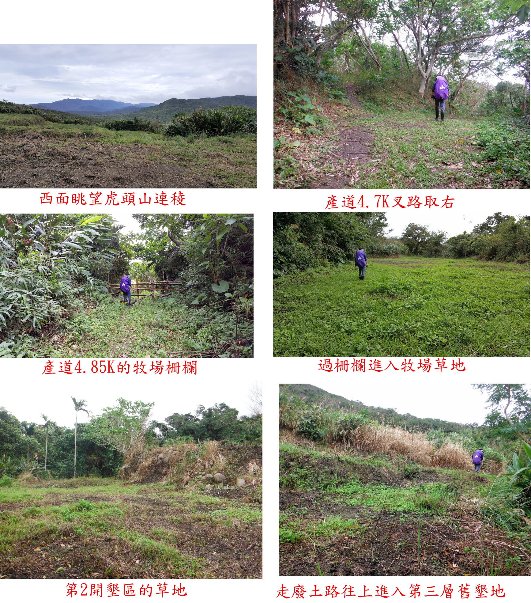13:38產道4.85K的牧場柵欄,翻過柵欄進入牧場草地;大鵬兄紀錄是取直廢產道續腰繞,但似乎看不到明顯山徑。