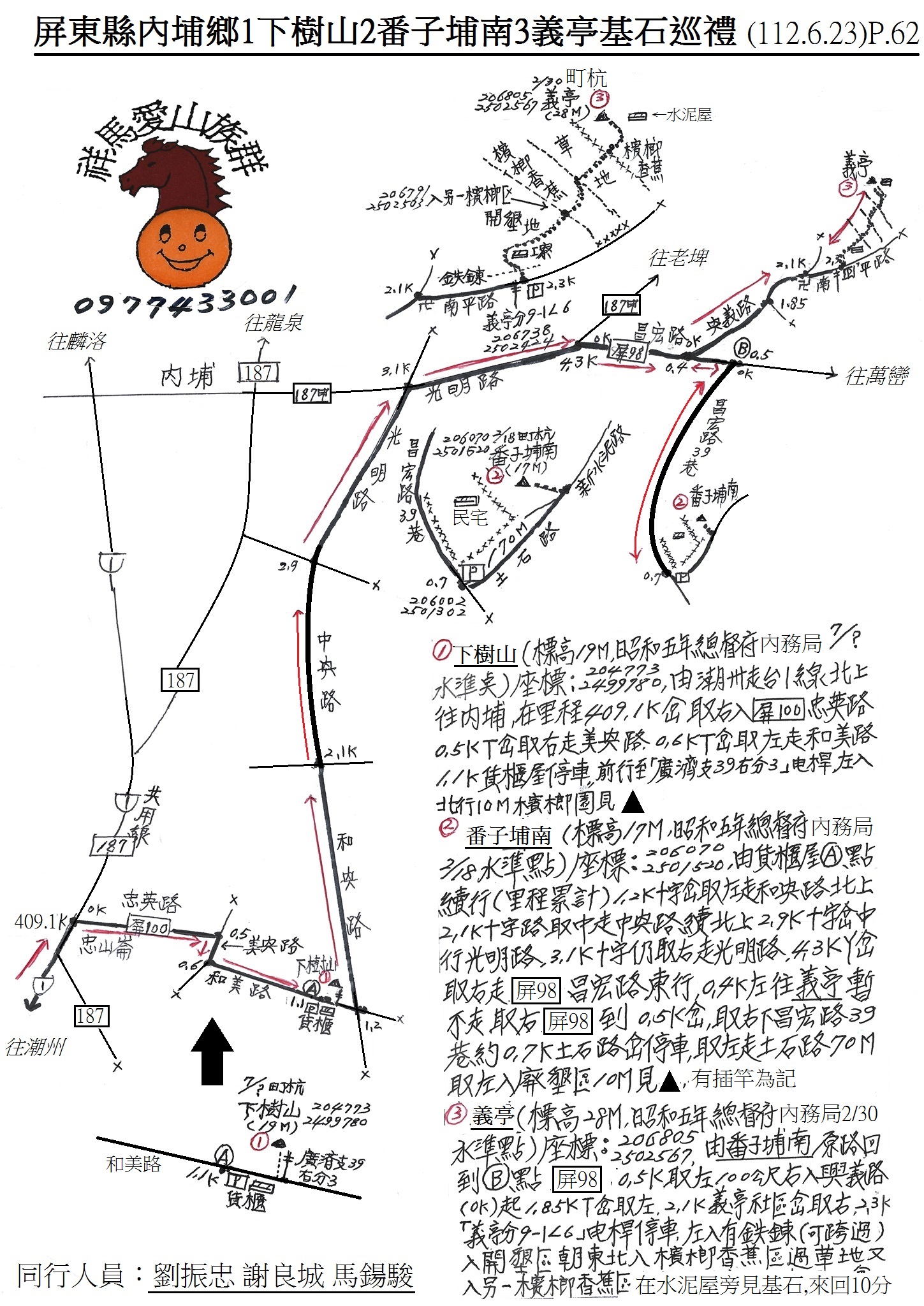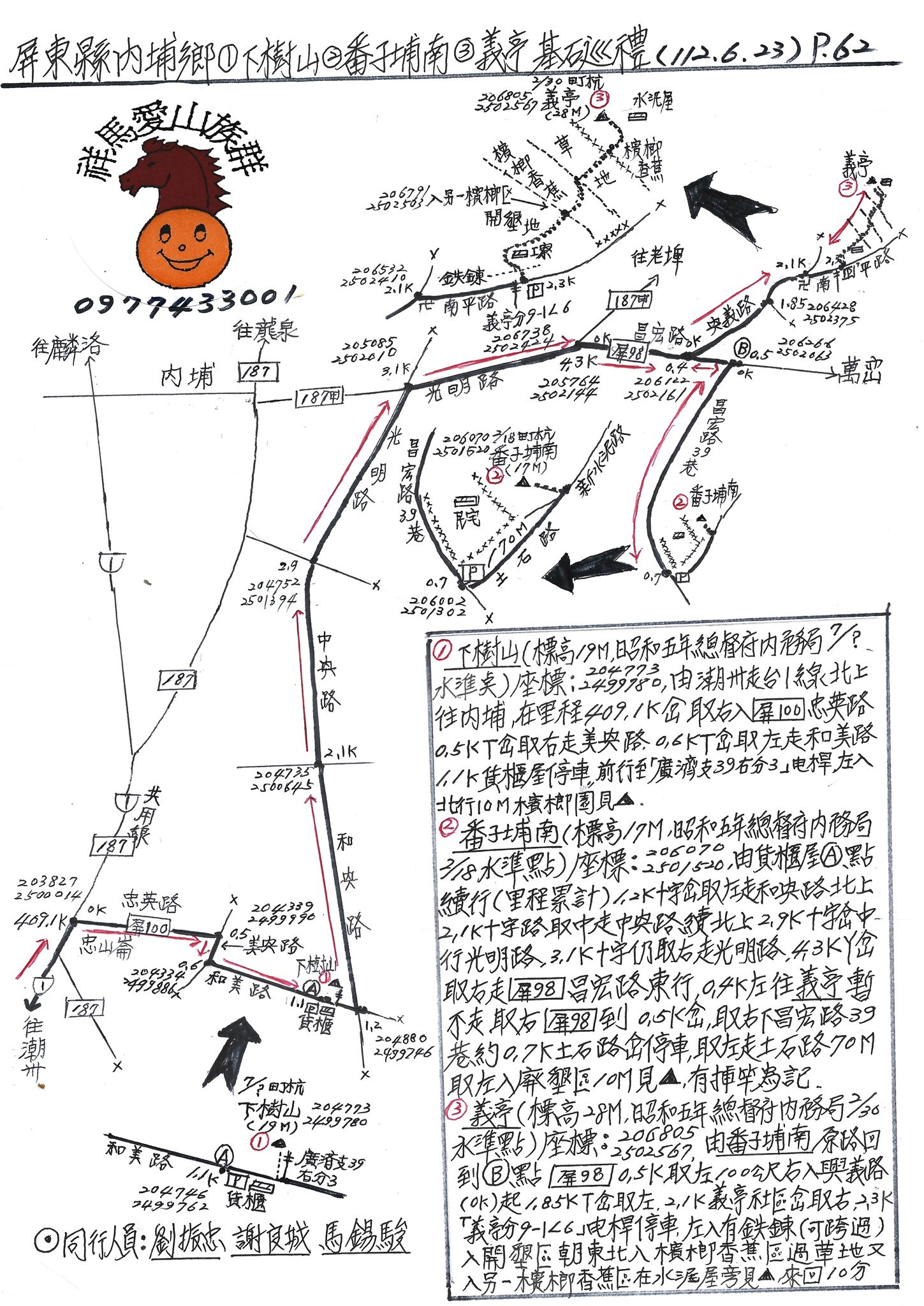 3下樹山(標高19M,昭和五年總督府內務局7/?水準點),座標:204773.2499780,在檳榔園內