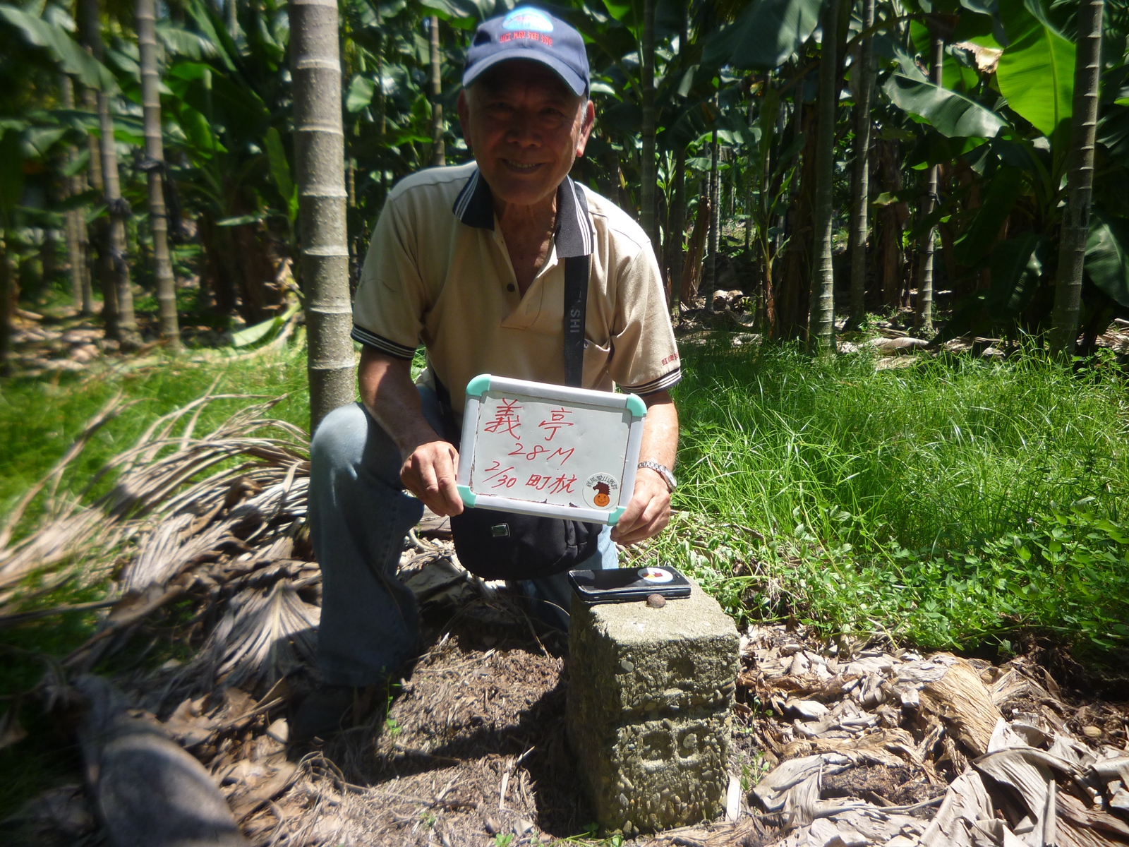7義亭(標高28M,昭和五年總督府內務局2/30水準點),座標:206805.2502567,基石在檳榔香蕉園內