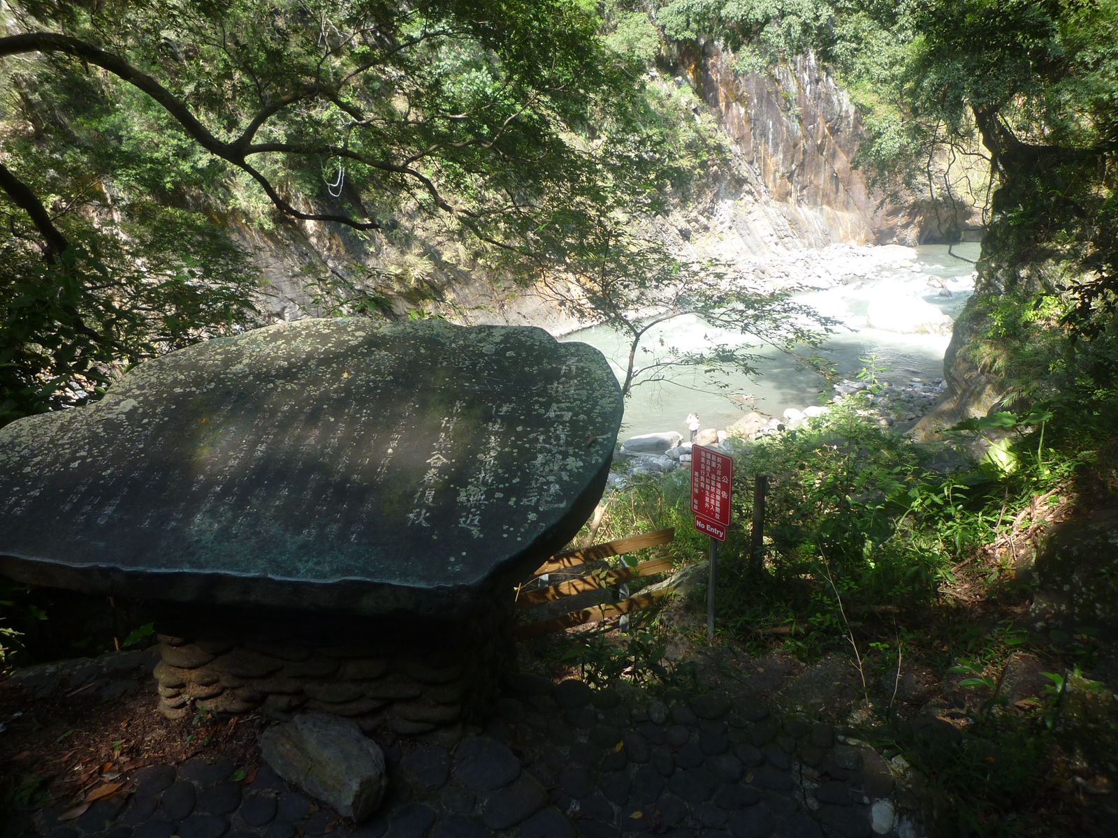 15青蛙石步道遺跡勒石旁有栅欄,禁止入溪