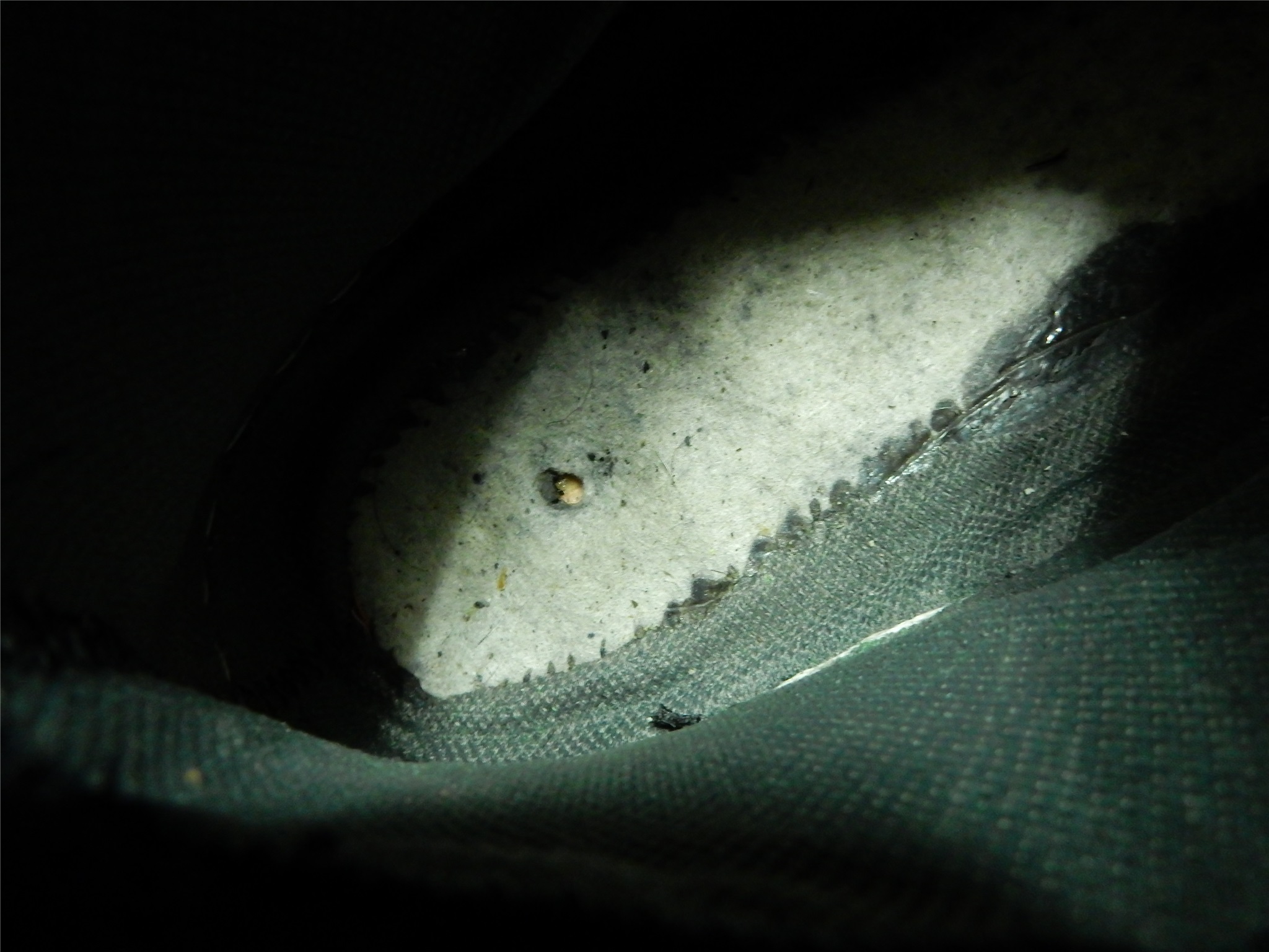 鞋內底部的縫針處理與兩個氣孔。用途是[放屁]用,行走時利用足底與地面擠壓放屁達到防水功能?有待涉水行程試驗。