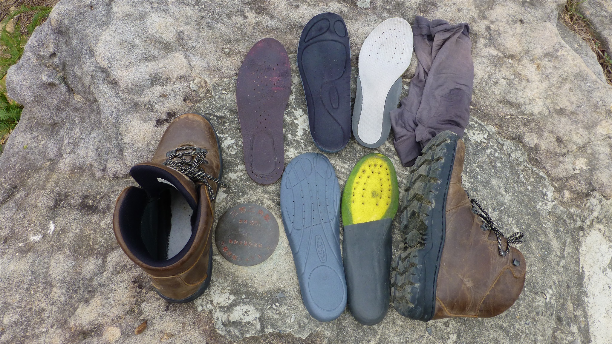 中間是KEEN登山鞋的鞋墊,忘了是哪一款的。這鞋墊裸足穿時很吸腳,會主動吸起鞋子減少上下擺動時得磨擦。(KEEN寬楦頭讓我治好雞眼後免去疼痛之苦)