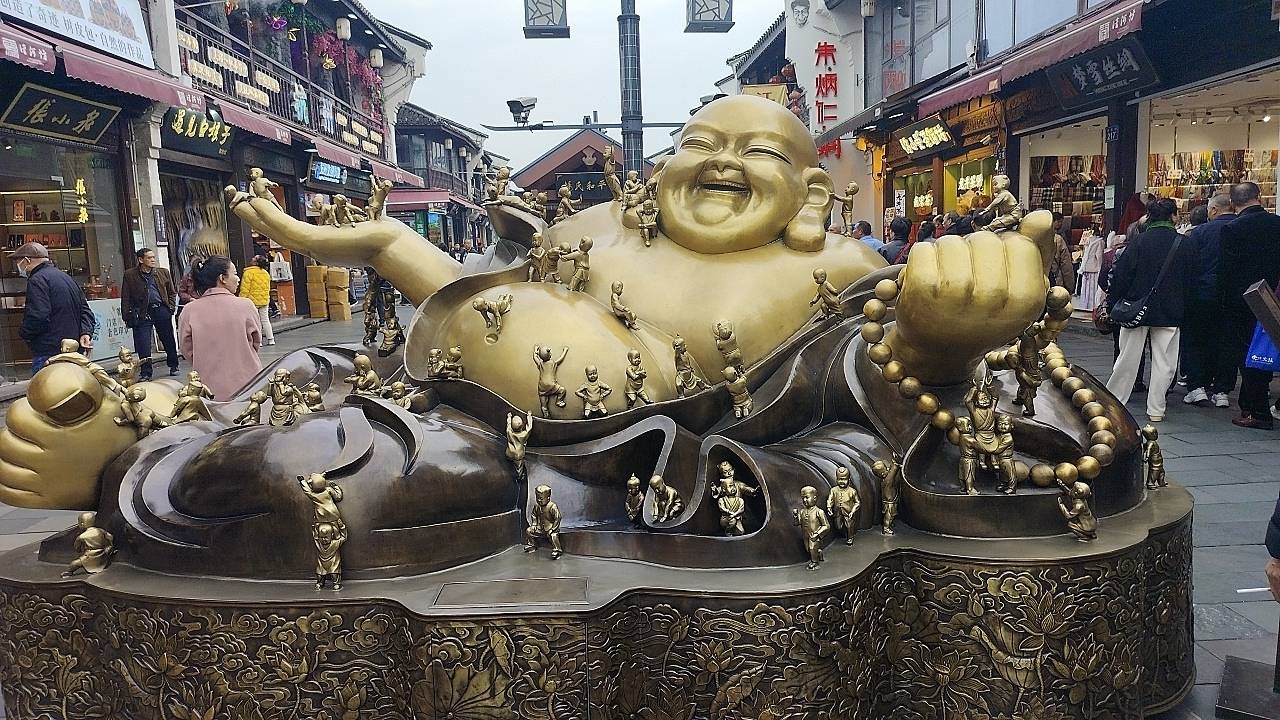4杭州明清河坊街,為歷史文化底藴的古街,「百子戯彌勒」,大度為懷