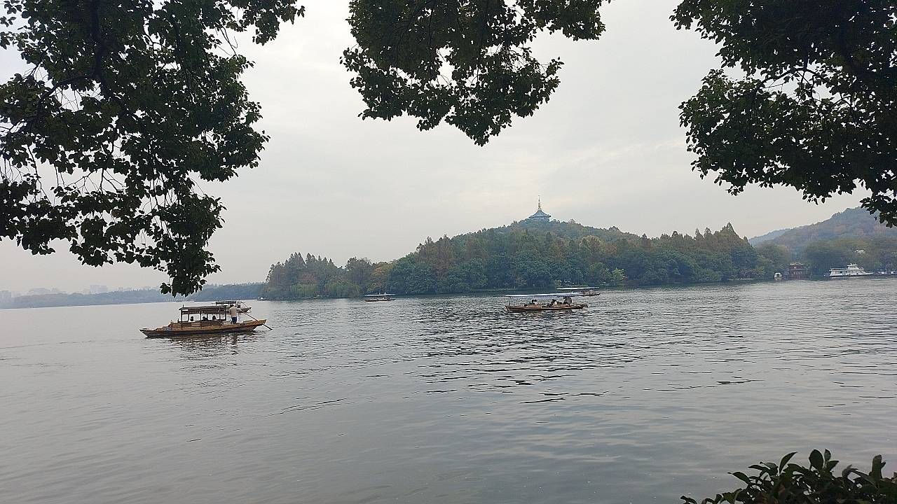 2杭州西湖搭艇遊湖,平波碧靜美如畫