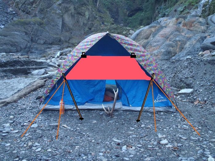 2) 底下這種改良A形帳,其擋風面與出入口等,皆可使用黑色大夾子,夾防水外帳或地布,擋起來。