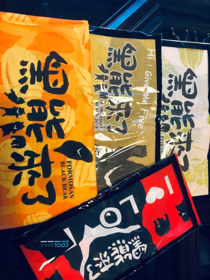 (麥導寄來一套4個「黑熊來了」頭巾)