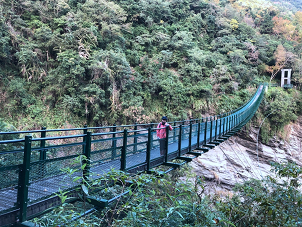 17:40回山風ㄧ號橋,天已暗下來,遊客都走光了,最後一段步道是康莊大道,我們住玉里,摸點小黑沒關係。