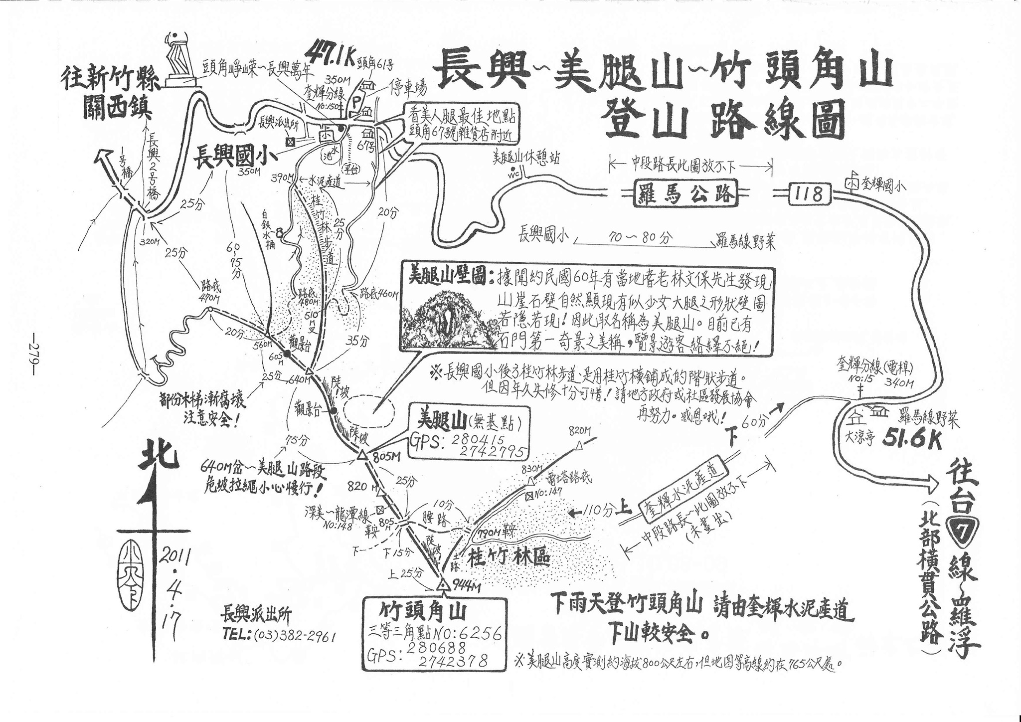 (十279) 長興~美腿山~竹頭角山登山路線圖
