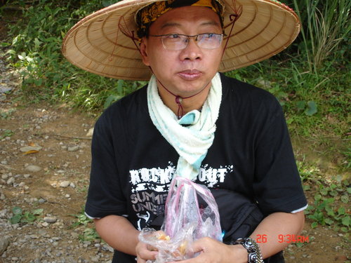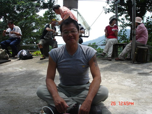11:45與李文陸往下行,抵石階 叉路,有民宅(登山路81之43號),情商借院地煮午膳,民宅主人很樂意的同意,並囑咐此處因半年沒雨,需節約用水,我則再回觀景樓請後到山友來此會合。