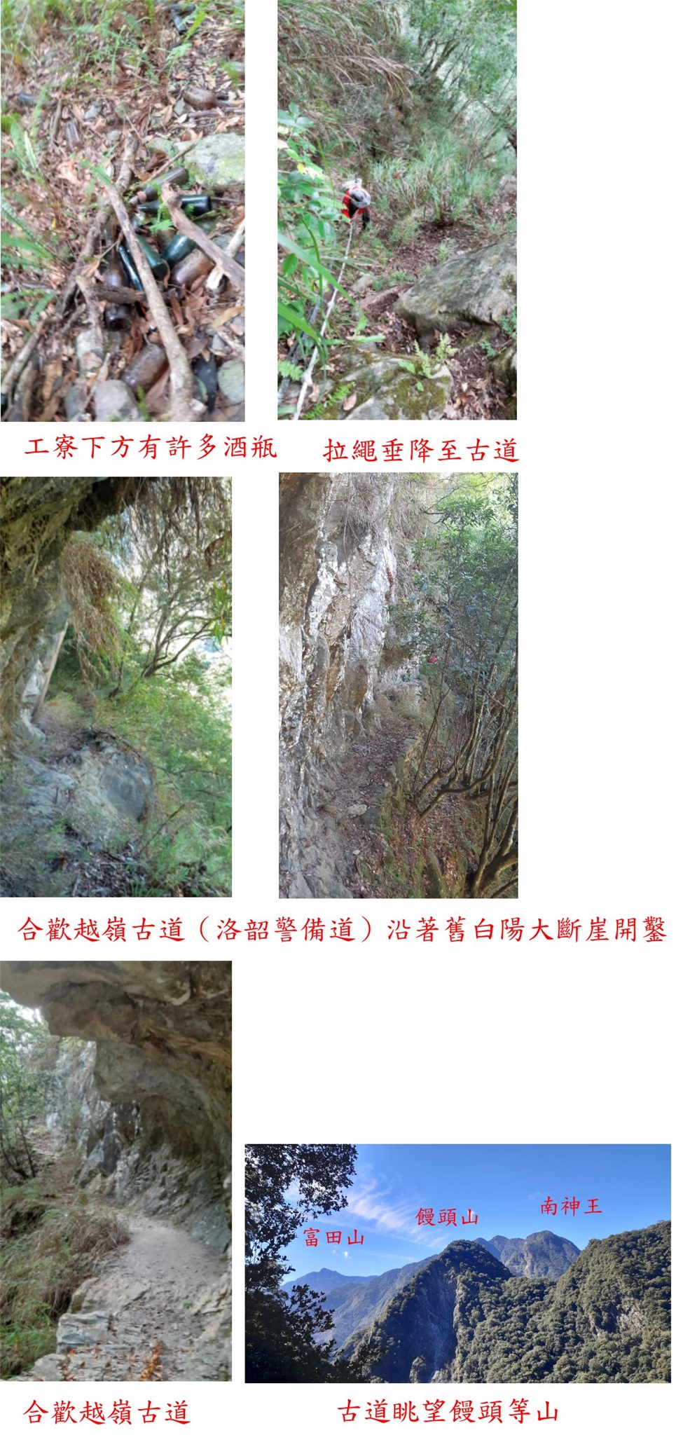08:43續行,改取左古道腰繞,古道沿著舊白陽大斷崖開鑿,曝露感頗重且路幅窄緩慢前行。
