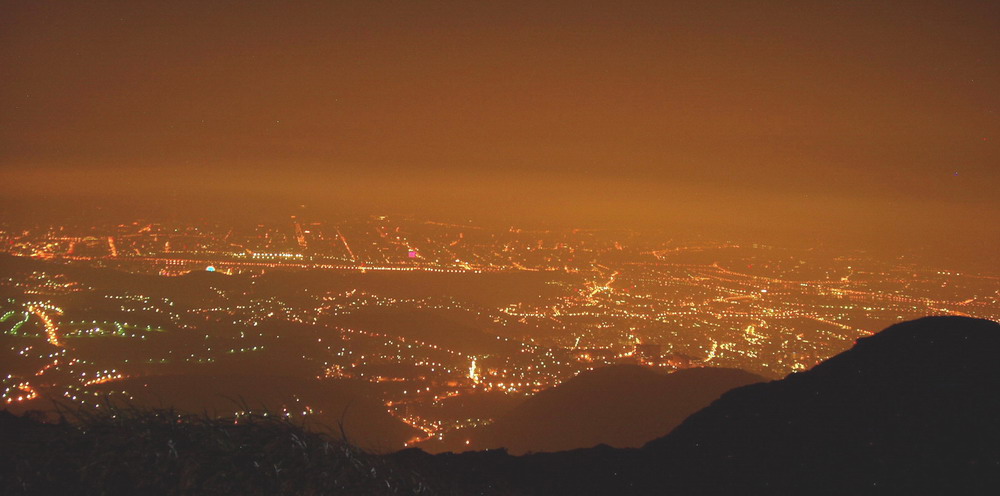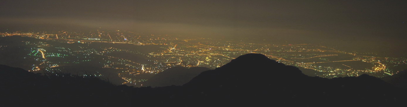 雖然天氣普通,天上也有霧,不過能夠清涼的爬七星山真是一件舒服的事,在主峰頂上玩了許久,沒想到回程走到一半才發現火龍果的護膝還丟在主峰...><,當時已經下山走了25min了...真的很想不管護膝直接下山...,但是後來還是個人造業個人擔,火龍果自己回去拿護膝 ...,一個人走在漆黑的山徑上真是草木皆兵,雖然七星山已經像家裡的"灶腳"一樣的熟悉,但是夜獨行的緊迫感依舊壟罩全身,山徑上的芒草不時的撥弄著已經繃緊心弦,突然莫名的騷動足以讓最後的防線潰堤,原來是夜裡驚醒的小鳥與不甘寂寞的青蛙,就這樣提心吊膽的取回了遺忘在山頂的護膝,在快要回到放下背包的地方時,mendy已經背起背包上來找人了,原來mendy獨自在原地待著也不好受,在沒有月亮的夜裡,除了遠方都市的燈火,往下是漆黑的樹林,往上是七星山巨大的黑影,沒有在活動時反而更容易東想西想,碰面後心裡總算踏實許多,可以安心的繼續回程,路上mendy就說下次再發生同樣的事情,如果不是放棄,她就一定會跟火龍果回去找裝備,看來這次的夜獨處的經驗一定是很深刻的。最後就在回到教育電台的涼亭時突然出現許多頭燈的光芒,沒想到現在已經是晚上12:50分了,還有一群人上來涼亭玩,回到冷水坑路旁還不時有車呼嘯而過,陽明山的夜晚還真是熱鬧啊!