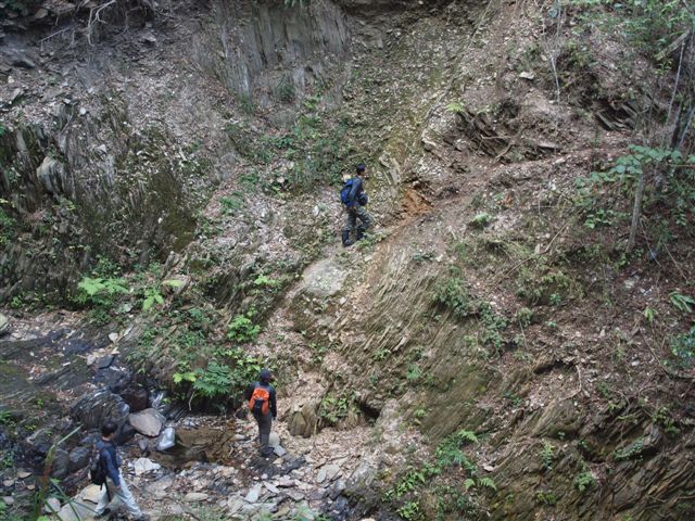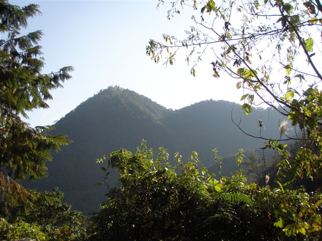 一早6:10離開家,7:00到達埔里地理中心碑,因與小花約在此處會合,不久阿億、棟哥、小花、阿人相繼出現,大夥先就地吃早餐,飽餐後再出發。接投71線,經靈巖山寺、麒麟國小,9.8K取右叉入,遇叉路取直行,為卓社林道起點(0K),一開始路面為新舖之水泥路,以為一路都是如此康莊大道,只是好景不常,沒多遠開始有鋪設路面工程,路面開始不佳,一路搖搖晃晃至14K處良久林場入口石碑,取左行,15K良久瀑布叉路取直行,16.2K叉路取直行,16.5K叉路取左下方,19.5K取左下方產業道路,之後經過一茶園,從大尖山叉路(良久林場入口石碑)取左約再行6公里到分分山登山口鐵皮工寮。