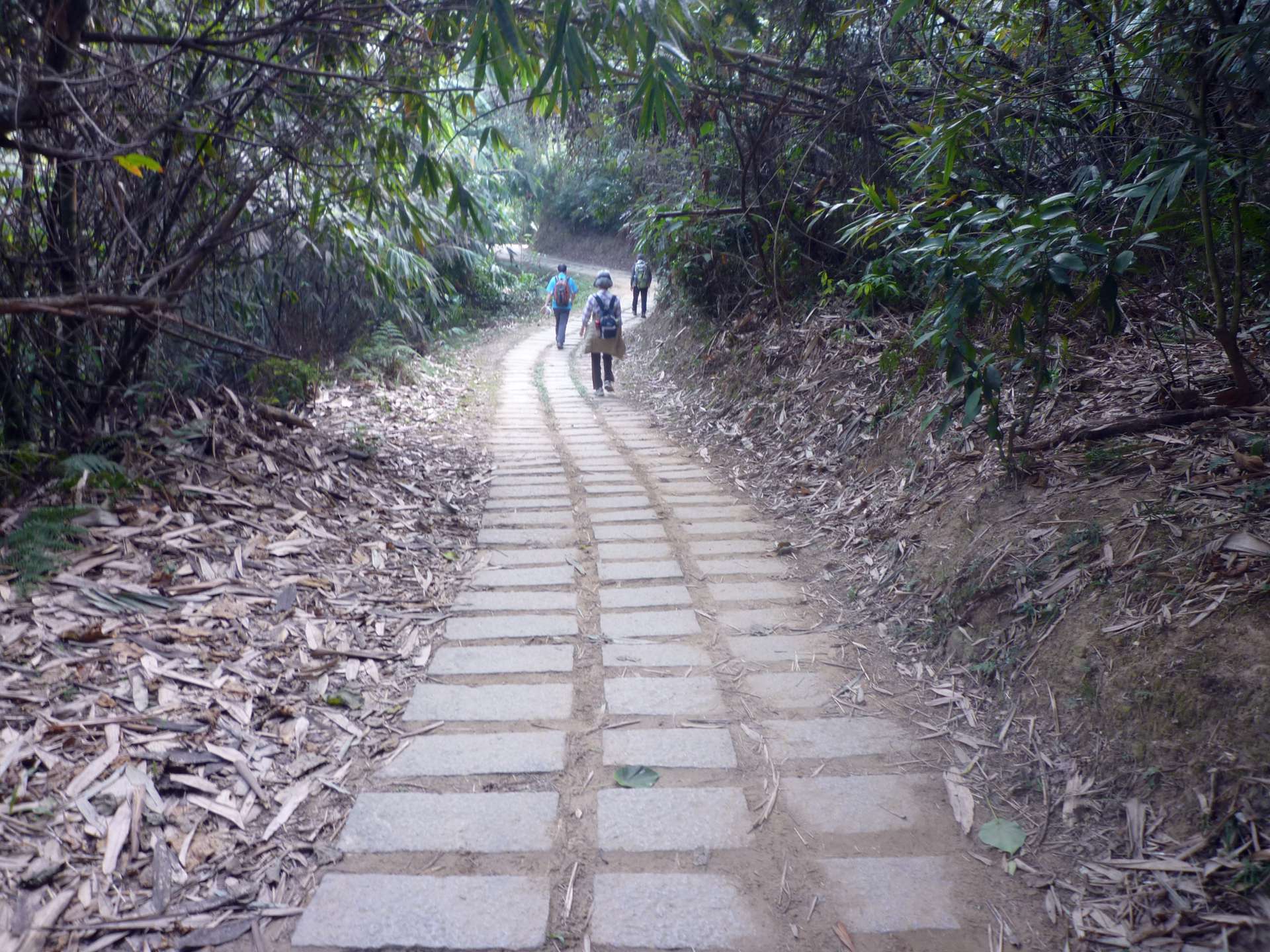 5大坑風景區7號步道,前段為水泥步道,中段為石板步道,後段為木棧梯,緩坡適中