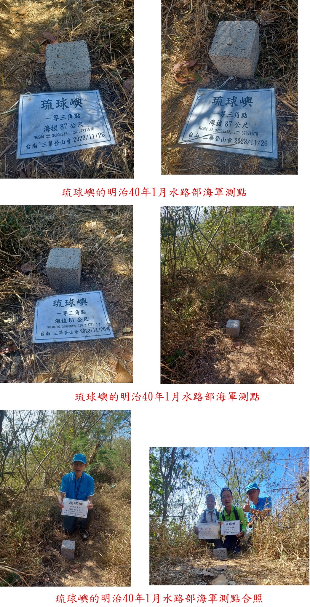 2/20-2/23約山友到南部撿遺漏或新找到的基石,第一天(2/20)首先去補頂上福的海軍三角點1017,由東港搭船至小琉球,上回因點位偏差找不到,此回有明顯小徑輕易找到;再來陪隊友去撿琉球嶼基石,機車幾乎可直達,有一等三角點與明治40年1月水路部海軍測點等2顆基石;接續來到鵝鑾鼻公園(燈塔)來尋訪4座台灣關界碑,立於清光緒九年(1883)歷史悠久,其中三座石碑於鵝鑾鼻公園內,另東南角碑則位在往台灣最南點的步道旁。
