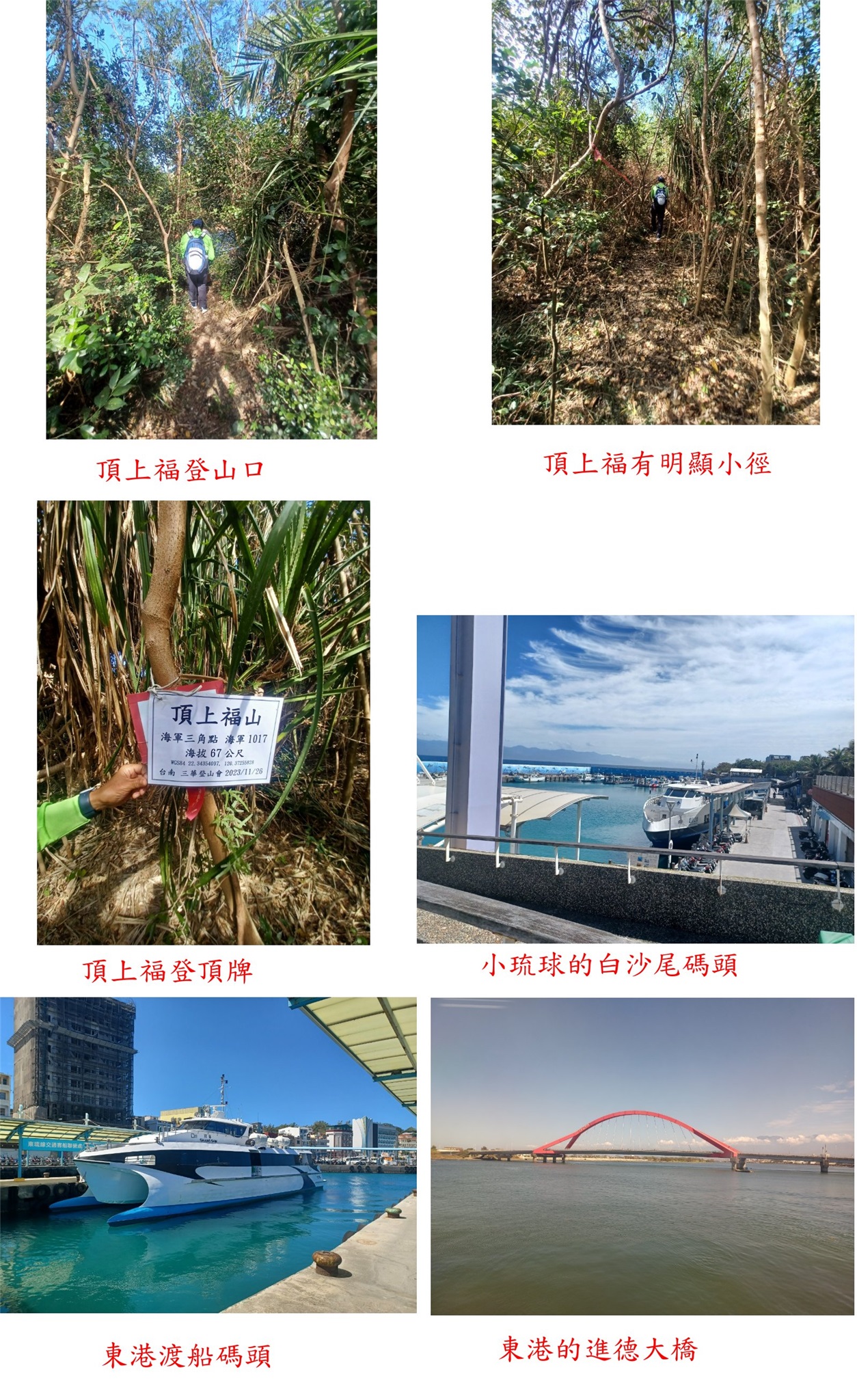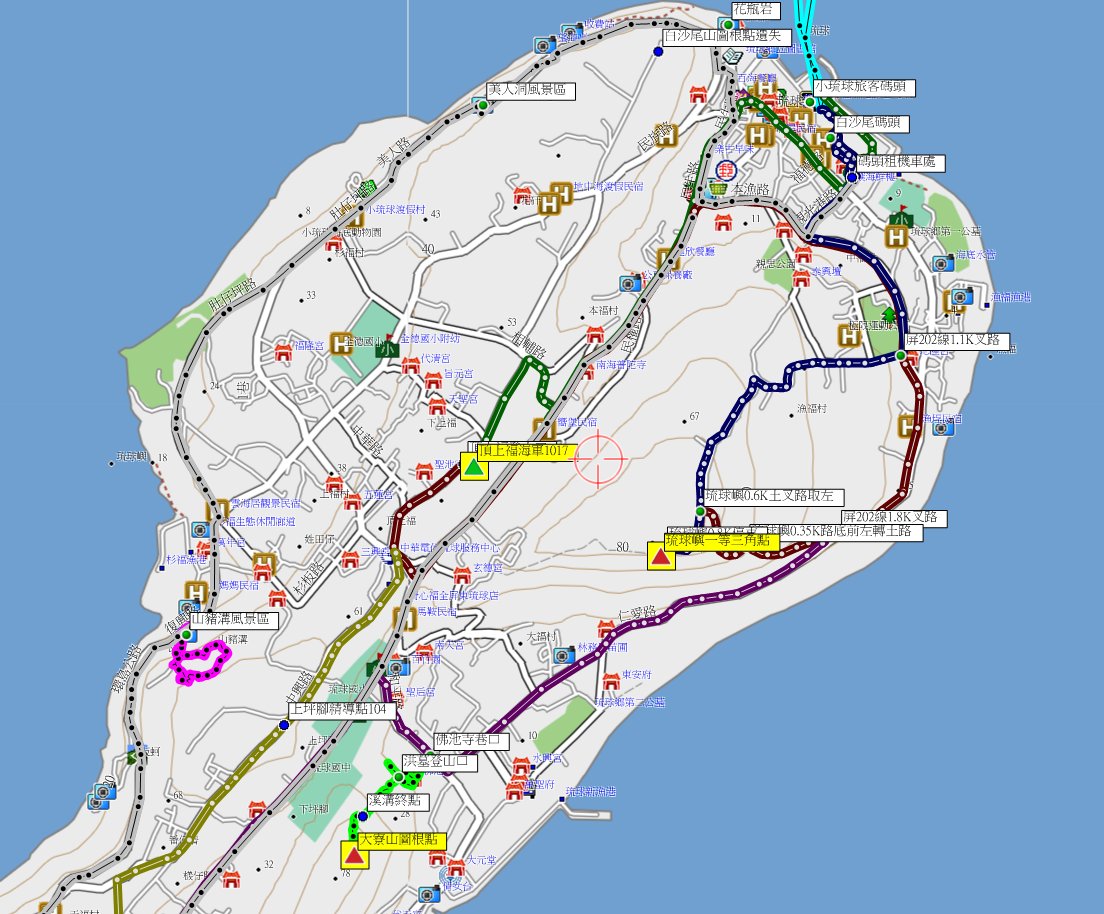 的船班;航行時間約小時抵達小琉球的白沙尾碼頭,隨即租好機車;碼頭右轉屏202線(環島公路)西北方向走0.5K,左轉民生路走0.3K,直行接到屏201線(中山路)走0.8K;右轉相埔路走0.2K,左轉屏203線(中華路)往南走0.4K登山口停車,基石直線距離不到