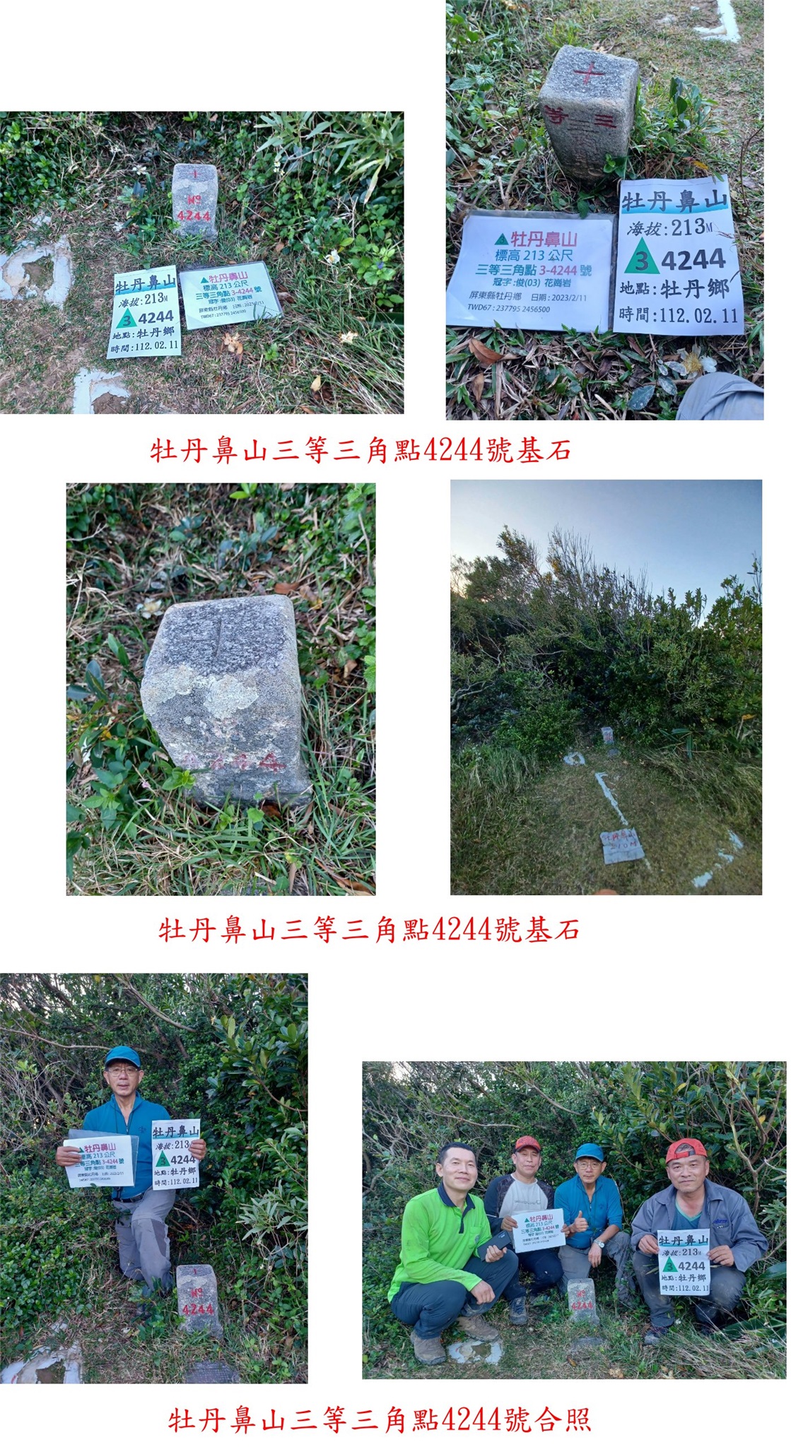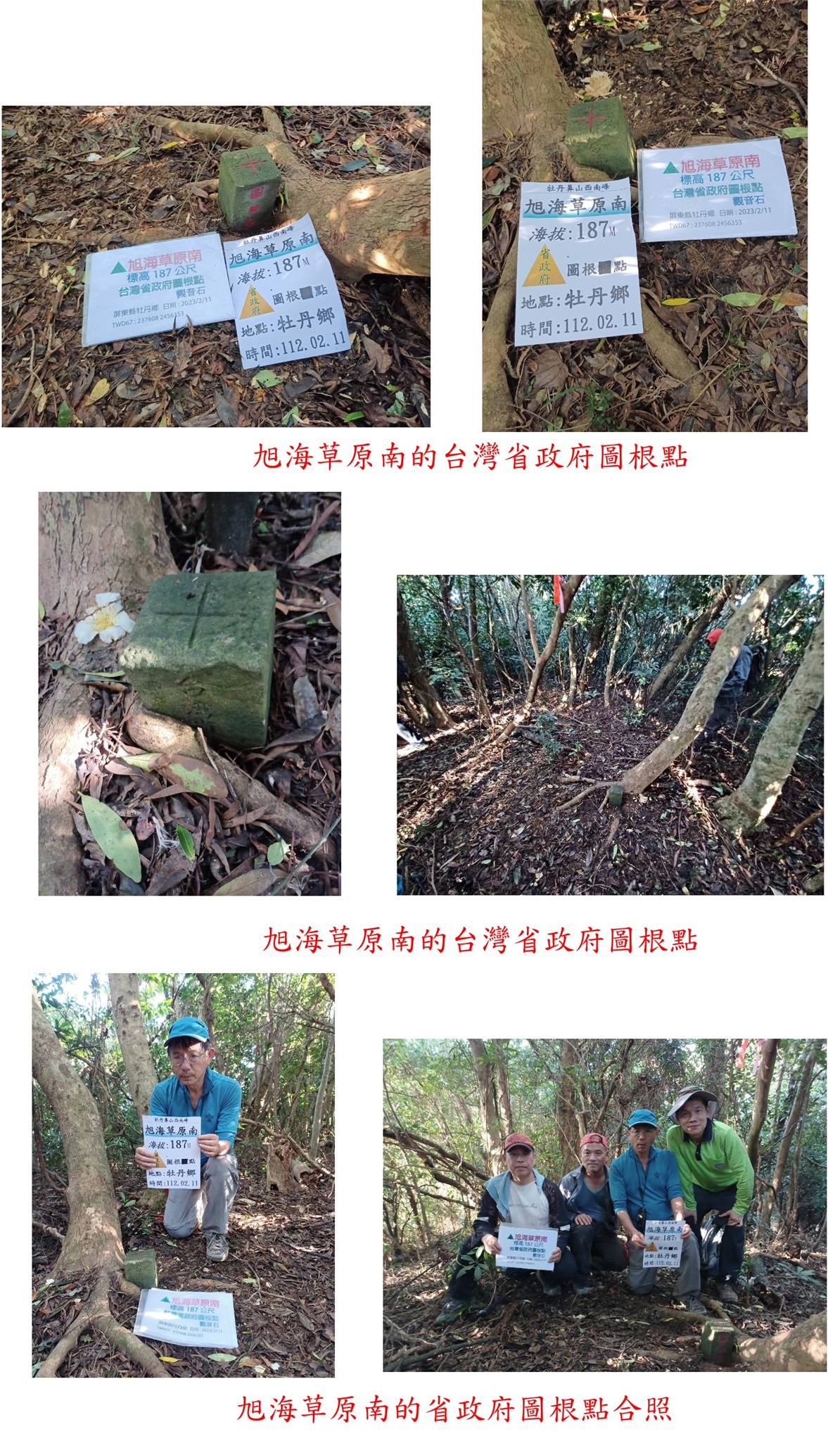 2/11約山友到屏東南端登山,午後來到旭海草原撿4顆基石,第1顆為旭海草原的屏東縣政府保留地界石柱,走草原步道至氣象站,右入樹林即抵達,去程走11分鐘;第2顆為旭海草原南的省政府圖根點,基石直線距離只有80公尺,走2分鐘即輕易入袋;第3顆為牡丹鼻山3-4244,回到氣象站續行草原步道至草原涼亭,右轉生態步道緩下即抵達,此點早年即來過;第4顆為北牡丹的中研院四號水泥柱,回到草原涼亭,續行草原步道走250公尺,左入樹林緩下再上即登頂;旭海草原連撿4顆基石,往返費時2小時又10分鐘,今日順利完成計畫目標,計撿了10顆基石,扣除3顆曾走過,尚有7顆新的基石入帳。