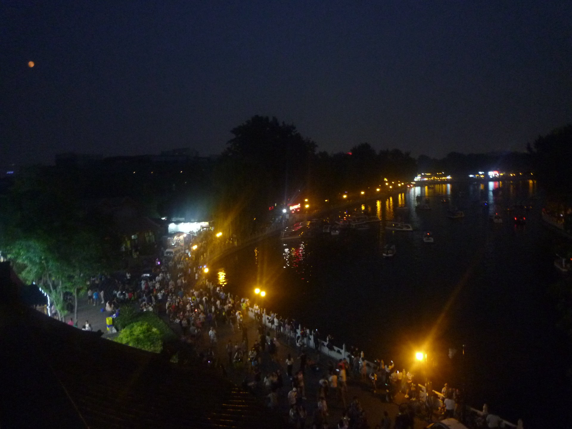 28夜晚的什剎海,歌舞笙平,霓虹月光相映,五光十色,令人陶醉