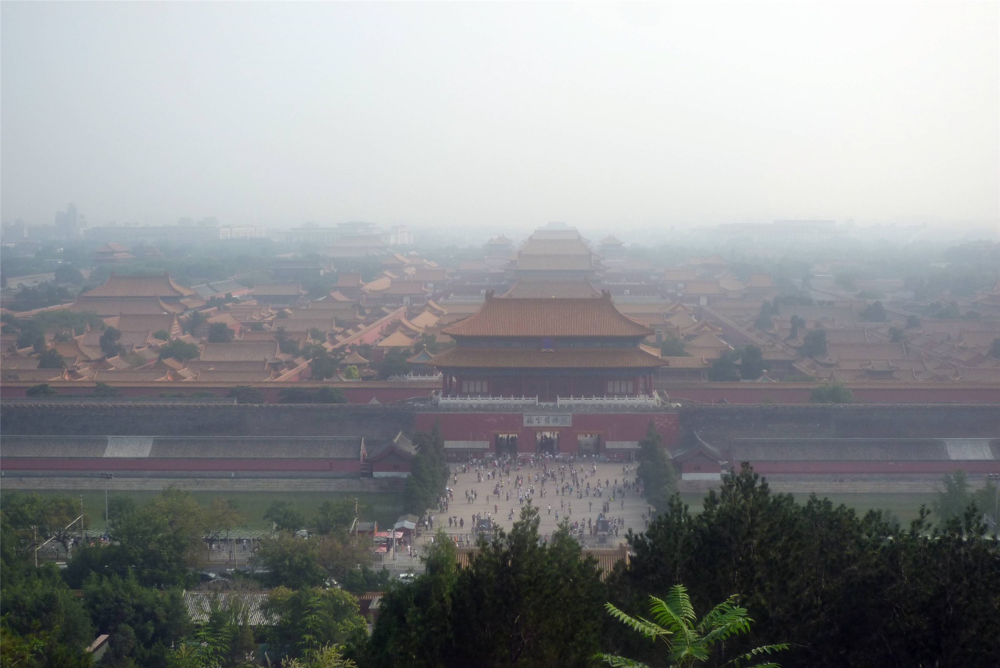 18景山公園頂上萬春亭上,俯瞰紫禁城,街衢井然,城河方正
