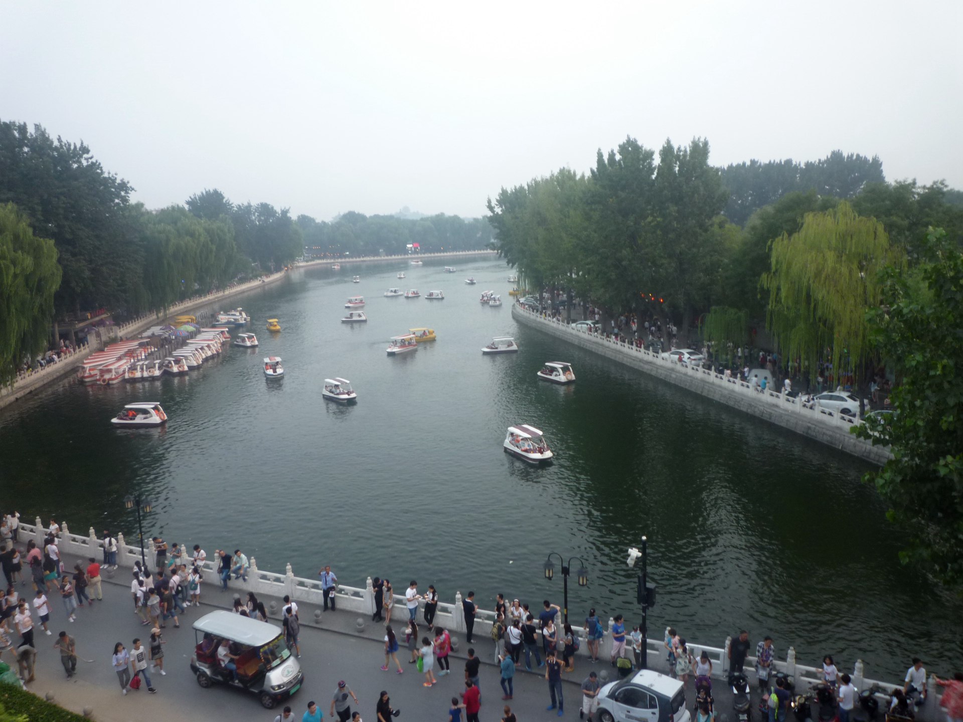 27白天的什剎海,湖光佳色,遊船穿梭海面,柳絮飄曳,相當舒暢