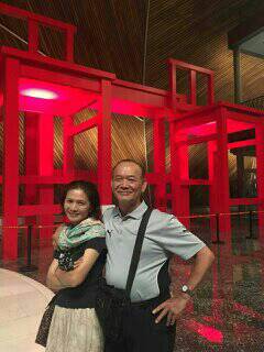 32國家大劇院內擺設大大紅框高高掛,藝術薈萃濃厚