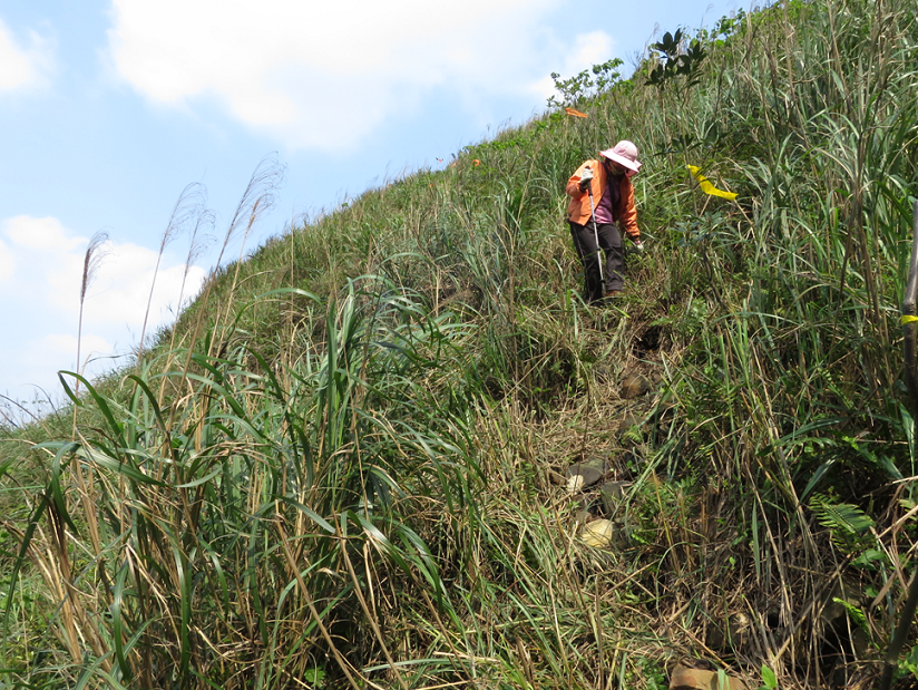 6. 爬過水螺山稜尾山頭,下抵鞍部,水圳道在此越嶺,但是鞍部還是太高,所以水圳挖涵洞穿過鞍部。