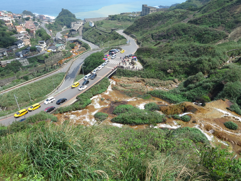 3. 從黃金瀑底起登,俯瞰遊客群。