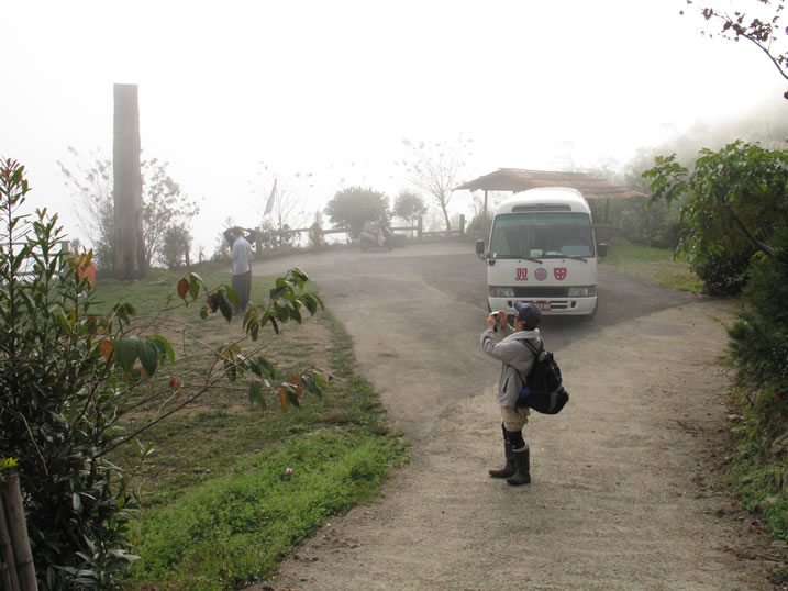 ◎快到大隘登山口時,手機聯絡發覺還有三位女山友也錯下高峰登山口,她們決定搭便車下山到廣惠宮等候。