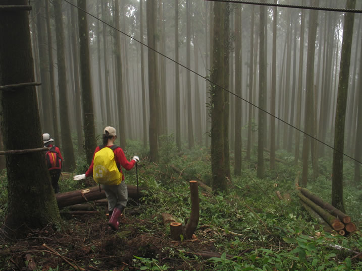 1046 杉木林伐木區,倒木擋道,右下方有泥土產道,一路循稜續行。1394M