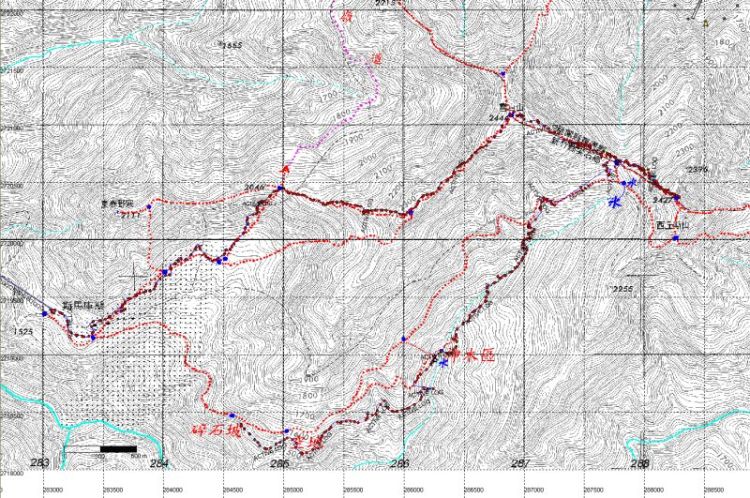 下山, 兵分三路, 小油叉路下獨木橋登山口, Hunter+多美麗, 十字路口取左下雪白登山口, 這第二登山徑被踩得粉粉的, 這一下雨, 上下山絶對滑到屁滾尿流, 又陡, 餘三人續前往東泰野寒.