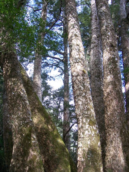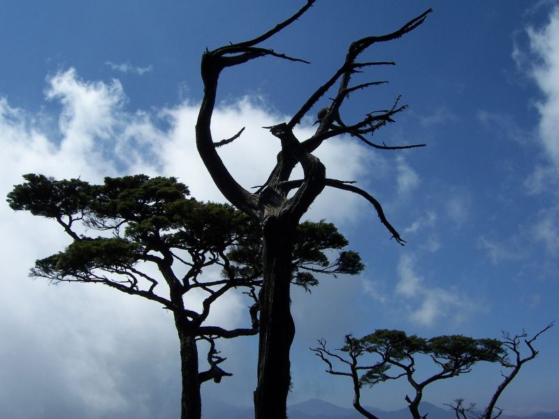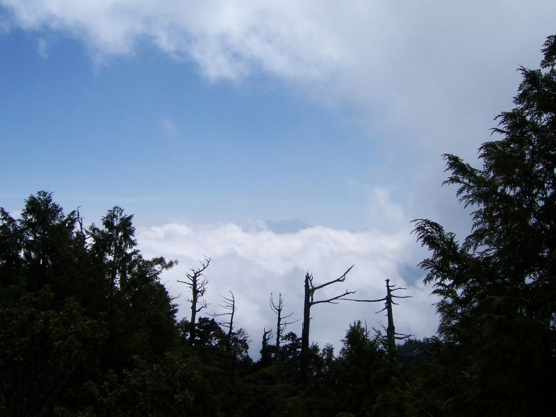 經過看不完的神木, 雙溪合流, 右股巨倒木, 取左股第二巨木下方上, 一路順暢接司馬庫斯古道, 又是一路巨木, 叉路往前鴛鴦湖, 左上西丘斯-雪白鞍部, 多美麗仍是一馬當先, 來回跑了不知多少趟, 鞍部取右上西丘斯左往雪白. 取右陡上西丘斯, 苦啊, 真的是四肢著地在爬, 抓箭竹, 握樹根, 咬牙切齒的爬, 突然嚮導又回過頭來看著我們說, 你們幹嘛! 兩條腿不走變四條腿, 偷學我哦!