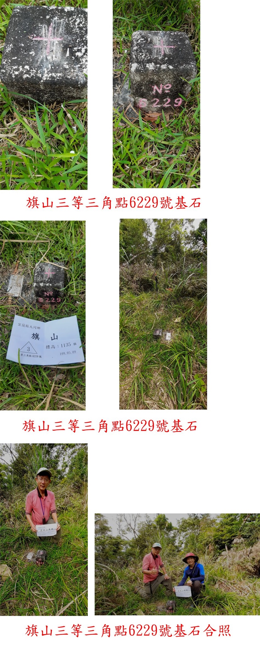 1、旗山:位於宜蘭縣大同鄉,標高1135公尺,三等三角點6229號基石;座標299785 2723687。