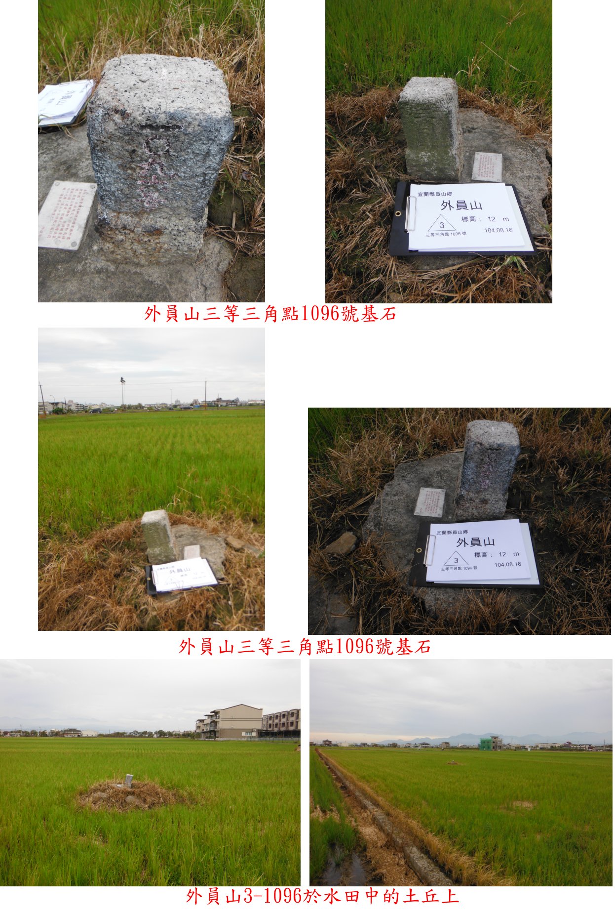 7、外員山:位於宜蘭縣員山鄉,標高12公尺,三等三角點1096號基石。