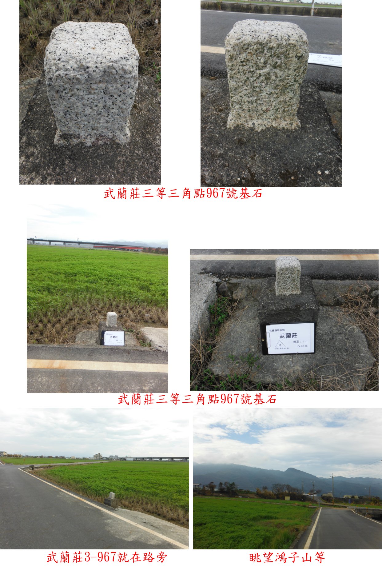 武蘭莊3-967號基石於路左靠稻田處,明顯好找、路右為水圳;此點為原點中海拔最低的基石,12年前亦曾來過。