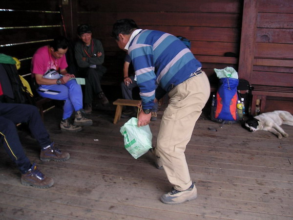 8時15分回抵山莊用早餐,略事休息9時15分下山。途中好幾位團員主動默默撿垃圾(紙屑、面紙、煙蒂、塑膠品….)攜帶下山,讓人汗顏與感慨,這才是真正的愛山人!聽說在日本還有人將排洩物,隨身攜帶下山。